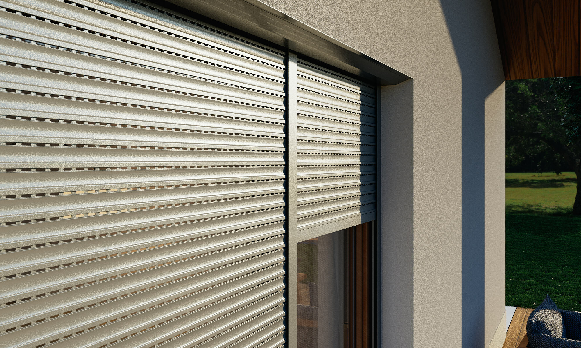 Unterputz-Vorbau-Rollläden vereint Funktionalität und Eleganz. Durch die Integration in die Fassade bleibt die klare Optik des Gebäudes erhalten, während es gleichzeitig zuverlässigen Schutz vor Sonne und Witterung bietet. Die präzise Fertigung aus hochwertigen Aluminiumelementen gewährleistet Langlebigkeit, Stabilität und ästhetische Perfektion.