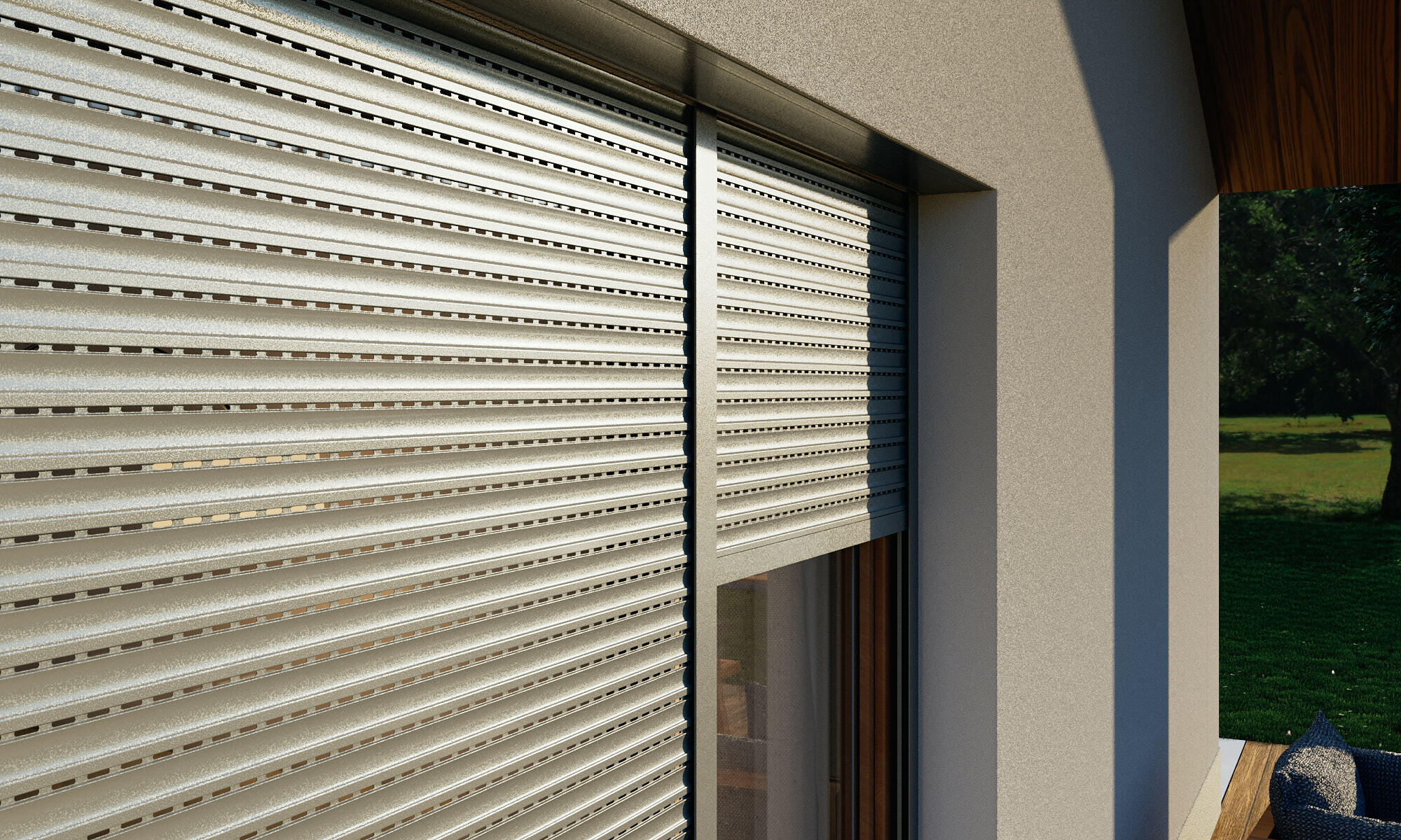 Unterputz-Vorbau-Rollläden 90° mit Aluminiumgehäuse bietet hervorragende Wärme- und Schalldämmung sowie eine lange Lebensdauer. Das Gehäuse ist rundum geschlossen, mit einer unteren Revisionsklappe und einem Träger aus stranggepresstem Aluminium. Bürsten verhindern das Eindringen von Insekten, und das Fliegengitter-Rollo ist mit einer Bremse für sanftes Hochziehen ausgestattet.